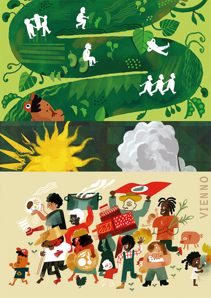 La lucha por la tierra es una lucha por la alimentación. La pandemia de COVID-19 mostró cómo las corporaciones transnacionales aprovecharon la crisis mundial para inflar los precios de los alimentos y beneficiarse con la especulación. Pero someter los alimentos a la lógica del mercado financiero tiene además otras consecuencias, como la reducción de la producción de cultivos tradicionales o locales en favor de commodities con mayor aceptación en el mercado. Cultivos como la soja, cuyo destino es la producción de combustible o alimentación animal (Tricontinental, 2019), convierten antiguas plantaciones de alimentos en desiertos de monocultivos. A esto se añade el riesgo de generar crisis alimentarias al comprometer cosechas futuras en las bolsas de valores. Aun así, cuando el agronegocio no reduce la producción o dificulta el acceso a los alimentos, está produciendo alimentos de mala calidad, ricos en residuos de agrotóxicos.